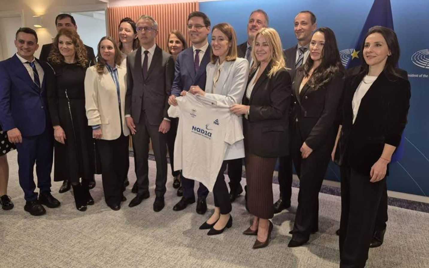 Domenica 18 luglio 1976. L’Olympic Dome è gremito. È il secondo giorno dei Giochi di Montreal. Una ginnasta quattordicenne di nome Nadia Comăneci fa la sua prima apparizione. La sua esibizione alle parallele asimmetriche quel giorno è “perfetta” e i giudici concordano nel darle un 10! Silenzio sbalordito! Non è possibile… Eppure lo è stato… Indubbiamente, quel “10 perfetto” trasformò la quattordicenne in una star mondiale e contribuì anche a rendere la ginnastica uno degli sport più popolari non solo ai Giochi Olimpici, ma in tutto il mondo. Nadia Comăneci vinse realizzando l’impossibile, dimostrando di “fluttuare in un oceano d’aria” durante la sua routine alle parallele asimmetriche. E poiché il suo punteggio è stato considerato il primo vero punteggio perfetto ottenuto ai Giochi Olimpici, qualsiasi affermazione in tal senso è altrettanto “perfetta”. Nadia Comăneci ha continuato con le stesse prestazioni eccezionali, ricevendo altri sei 10 perfetti a Montreal… Il trionfo di Nadia Comăneci, sotto i riflettori delle telecamere – un’indiscutibile opportunità di diffusione globale istantanea – e l’incapacità del computer di elaborarlo, a dimostrazione del fatto che il limite immaginario del valore non poteva essere realmente calcolato o concepito, il tutto intrecciato in un valore simbolico – è diventato, per il mondo dello sport, un importante punto di riferimento. Le sue conseguenze hanno avuto un’eco nel tempo, trascendendo il valore dell’astratto. Nadia Comaneci a Montreal 1976 Sono passati cinquant’anni… Le leggende non muoiono mai!… Il 10 luglio 2025, il Presidente della Romania, Nicușor Dan, ha firmato il decreto che promulga la legge del Parlamento che istituisce il 2026 come “Anno di Nadia Comăneci”, per celebrare il 50° anniversario delle leggendarie imprese della ginnasta rumena alla 21ª edizione dei Giochi Olimpici estivi tenutisi nel 1976 a Montreal, dove ottenne il primo 10 perfetto nella ginnastica mondiale. Nell’ambito di questo progetto, nel corso del 2026 saranno organizzati diversi eventi, coordinati dal Comitato Olimpico e Sportivo Rumeno e dalla Federazione Rumena di Ginnastica. Nell’ambito della serie di eventi organizzati per l’«Anno di Nadia Comăneci», «la Dea» di Montreal è stata invitata questa settimana al Parlamento europeo. La visita è avvenuta su iniziativa di Victor Negrescu, vicepresidente del Parlamento europeo, e di Dragoș Benea, membro del Parlamento europeo, che sostengono la promozione dello sport rumeno a livello europeo e facilitano questo dialogo al più alto livello istituzionale. L’invito era finalizzato non solo a celebrare la grande campionessa, ma anche a fornire un’opportunità per stimolare dibattiti «nel contesto delle iniziative europee che sostengono lo sport come strumento di coesione sociale, istruzione e salute, nonché come piattaforma per promuovere l’eccellenza e la prestazione». Nadia Comaneci Durante la sua visita a Bruxelles, Nadia Comăneci è stata accompagnata da leggende della ginnastica rumena e internazionale, leggende delle principali competizioni mondiali e olimpiche: Simona Amânar, Andreea Răducan, Cătălina Ponor, Marius Urzică, Marian Drăgulescu. Accanto alle leggende della ginnastica c’erano anche altri grandi e pluricampioni olimpici e mondiali e medagliati, figure di spicco dello sport rumeno come Laura Badea, Ana Maria Brânză (scherma), Constantina Diță (atletica leggera), nonché un gruppo di giovani ginnaste del Club Sportivo Municipale di Onesti, il loro allenatore e il direttore del club di Onesti, il club dove Nadia Comăneci ha fatto il suo debutto e ha mosso i primi passi. Erano presenti anche il presidente del Comitato Olimpico e Sportivo Rumeno Mihai Covaliu (campione olimpico di scherma), Thomas Răzvan Moldovan, vicepresidente dell’Agenzia Nazionale per lo Sport, e Alexandru Dragomir, direttore dell’ANS e del Comitato Olimpico Rumeno. Il momento clou della visita è stato l’incontro con Roberta Metsola, presidente del Parlamento europeo, che ha dato il benvenuto alla delegazione rumena. Insieme alla delegazione rumena, hanno discusso del ruolo dello sport nella società e dell’impatto dei grandi campioni come modelli di riferimento per le generazioni future. Roberta Metsola ha ricevuto la maglietta “Nadia”, una sciarpa e un libro autografato da Nadia Comăneci per la Casa della Storia Europea. “È stato estremamente emozionante, perché non mi rendevo conto che quel momento avrebbe avuto un impatto così grande sulle persone di tutto il mondo, che sono cresciute con o hanno sentito parlare di quel 10 storico. È stata un’esperienza che mi ha toccato l’anima, perché ho rivissuto tutta la mia storia, condensata in un incontro che celebrava l’eccellenza, la perfezione e un momento storico. Ho rivisto molti amici, ma anche persone che non avevo mai incontrato prima, che sono venute a condividere questa emozione con me. Mi sentivo come se stessi entrando in palestra. Pensavo che l’esercizio a corpo libero fosse il prossimo e mi chiedevo dove fosse la musica. Per me era il quinto attrezzo…”, ha detto Nadia Comaneci al termine della conferenza tenutasi al Parlamento europeo. Credo che questo evento sia stato straordinario e spero che abbia un grande impatto. Dobbiamo riconoscere l’importanza dello sport, perché non si tratta solo di vincere medaglie; è importante anche per la società. Nello sport, tutti parlano la stessa lingua e l’intero pianeta si unisce quando si tratta di sport. Lo sport rappresenta un paese, una comunità, una cultura, e sono grata che questo momento sia stato celebrato. Spero che questo sia un nuovo inizio per le generazioni di oggi e per i genitori, che devono capire che lo sport deve esistere”, ha aggiunto. Nadia Comăneci Il programma ha incluso anche una visita alla Casa della Storia Europea, dove Nadia Comăneci ha donato un libro – un gesto s